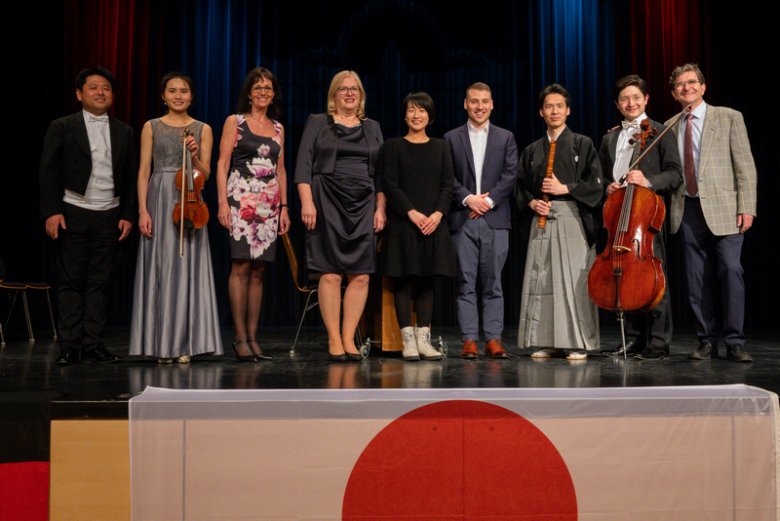 Ein Kammerorchester mit Klavier, Violine und Cello um den renommierten Cellisten Michael Michitaro Luginbühl (u.a. Wiener Symphoniker) bot gemeinsam mit dem international bekannten Flötisten Akihito Obama deutsche Klassik im Zusammenspiel mit der traditionellen japanischen Bambusflöte „Shakuhachi“.